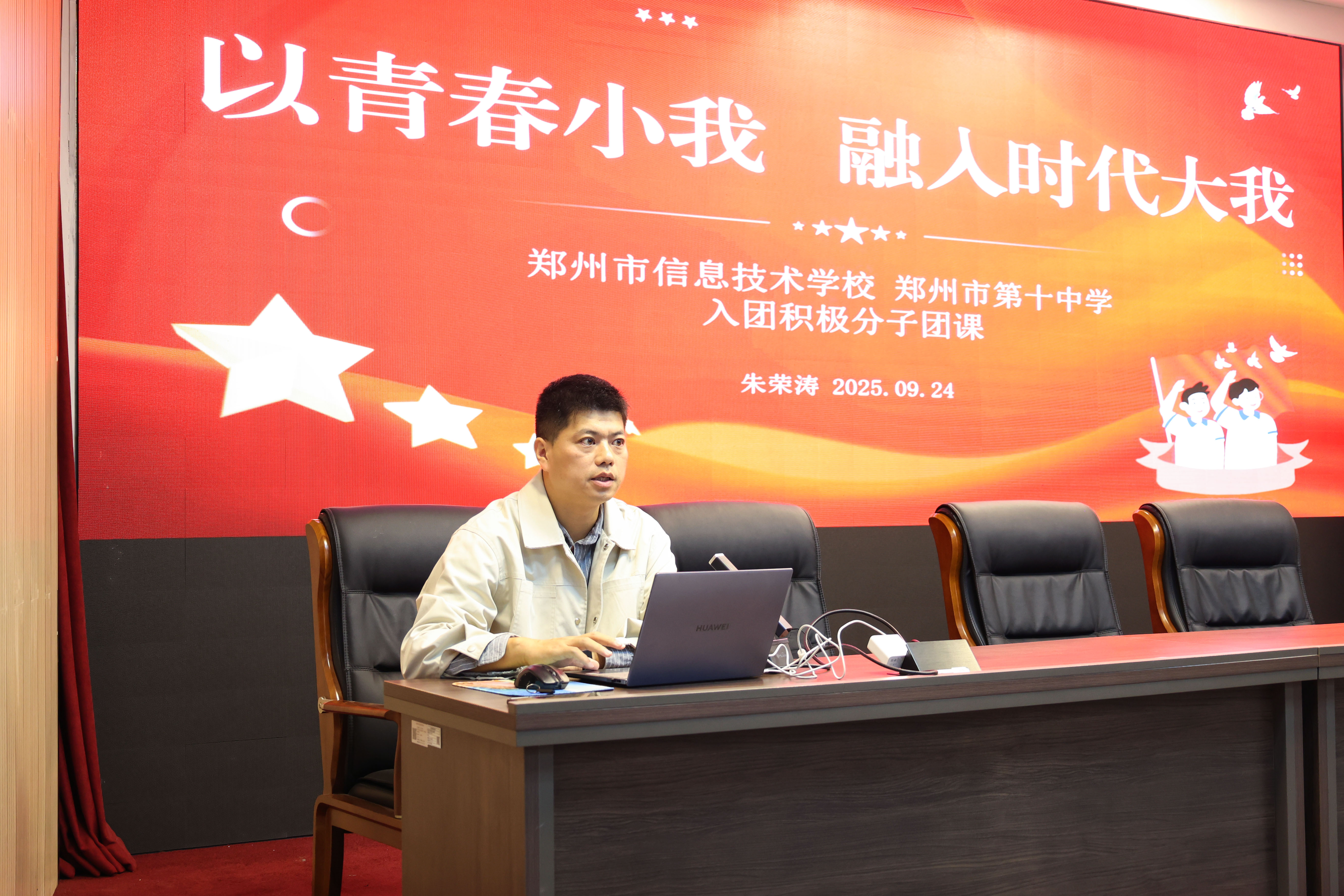 为引导广大团员青年坚定理想信念,强化青年学生责任担当,9月24日,郑州市信息技术学校(郑州市第十中学)在三号楼二楼报告厅开展“以青春小我 融入时代大我”主题团课活动。副校长朱荣涛担任主讲人,全校入团积极分子参加此次学习。