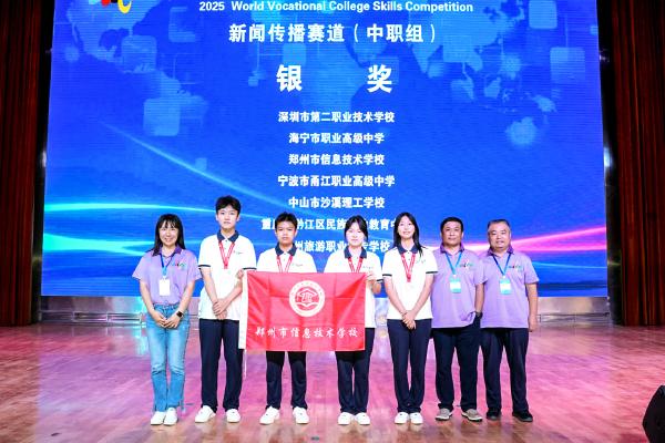 郑州市信息技术学校荣获2025年世界职业院校技能大赛总决赛争夺赛新闻传播赛道(中职组)银奖 参赛师生合影 认真备赛 8月29日,郑州市信息技术学校在2025年世界职业院校技能大赛总决赛争夺赛新闻传播赛道(中职组)斩...