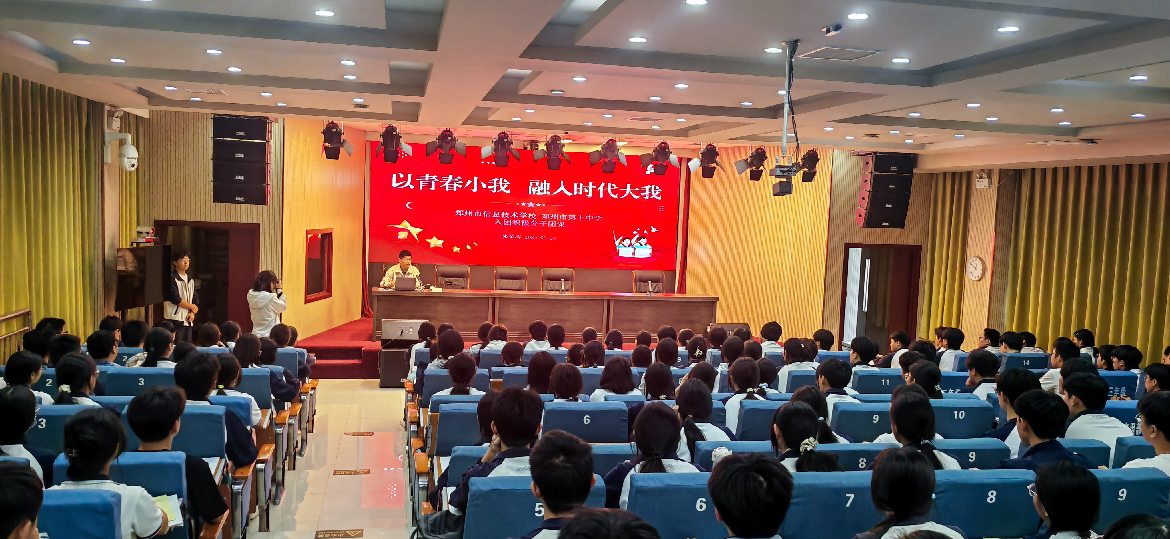 为引导广大团员青年坚定理想信念,强化青年学生责任担当,9月24日,郑州市信息技术学校(郑州市第十中学)在三号楼二楼报告厅开展“以青春小我 融入时代大我”主题团课活动。副校长朱荣涛担任主讲人,全校入团积极分子参加此次学习。