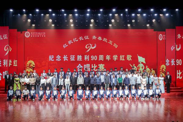 活动现场六位主持人深情开场副校长朱荣涛致辞队列整齐 深情合唱总导演张文戈老师指挥《我和我的祖国》特等...