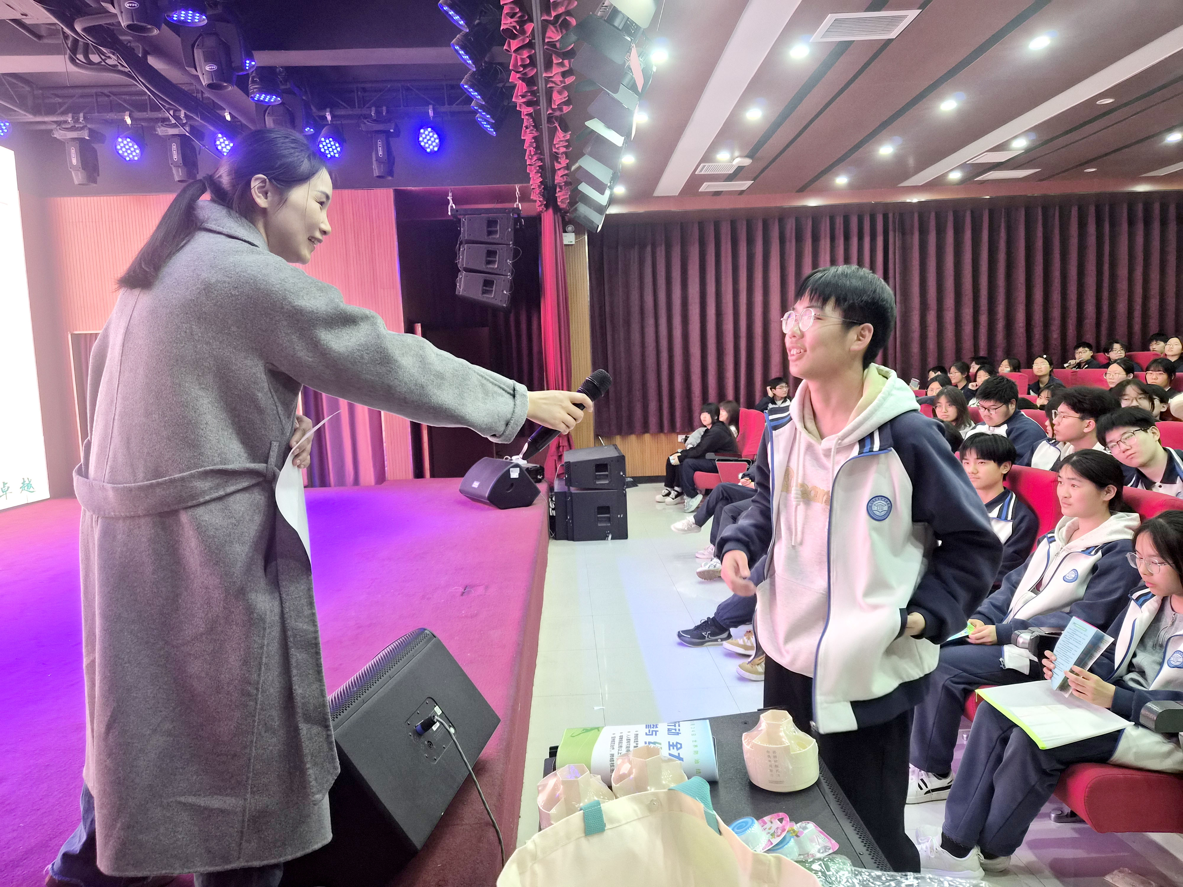 为巩固学习效果,讲座后特设知识问答互动环节。学生代表们踊跃抢答,现场气氛热烈,答对的同学还收获了水杯、笔筒、文件袋等实用礼品,在轻松的氛围中加深了对结核防控知识的理解与记忆。