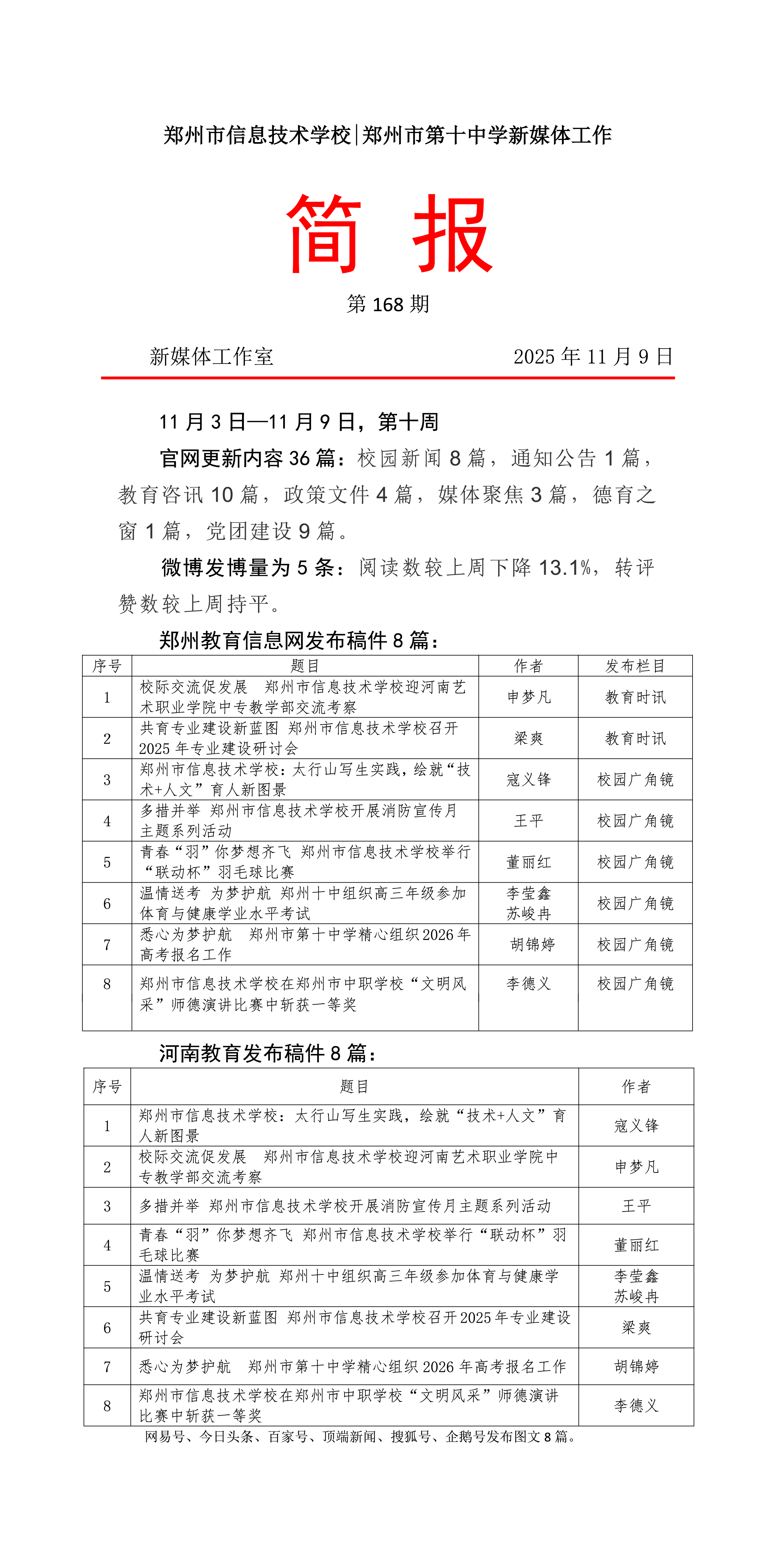 新媒体工作简报第168期(11.03~11.09)