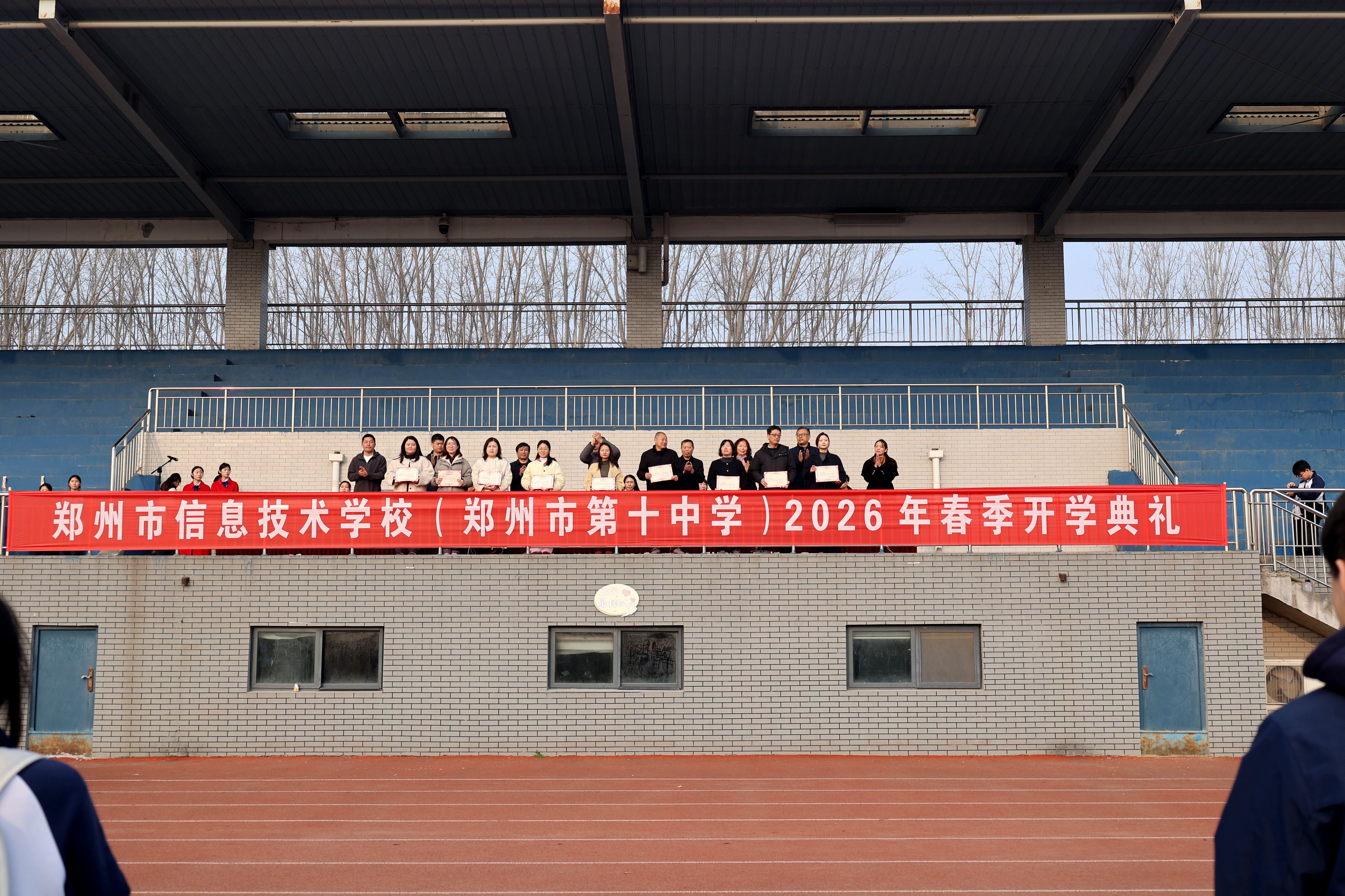 春风拂绿,万象更新。3月10日清晨,郑州市信息技术学校(郑州十中)全体师生齐聚操场,举行2026年春季学期开学典礼。校党委书记邵元辉,副校长郑棣、张继波、朱荣涛、王丽,副校级干部高保军、卢广峰及各中层干部出席,典礼由政教处主任李晓培主持。